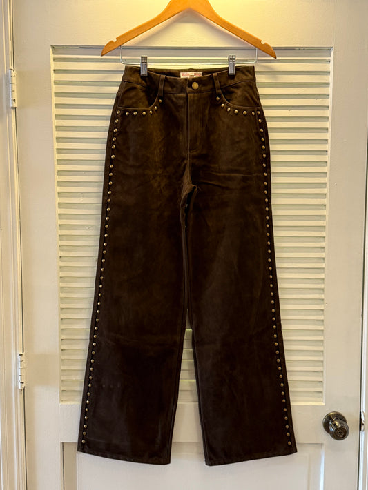Studded Suede Wide Leg Pant
