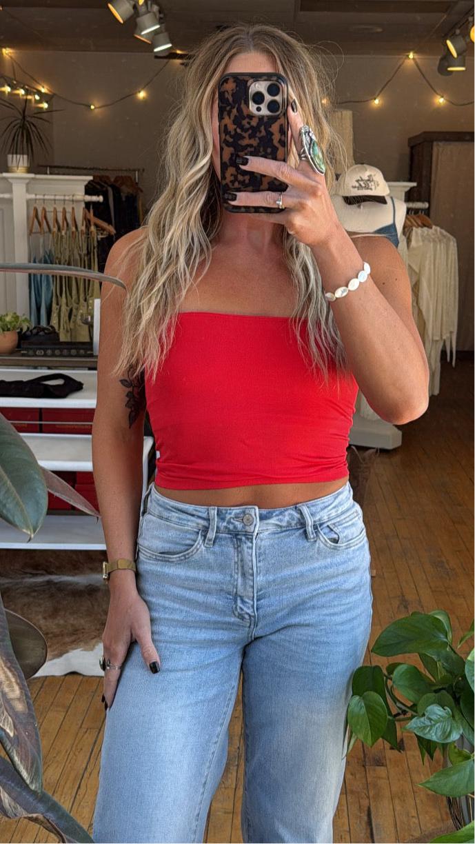 The most comfy stretch tube top! Double lined in the bust. The best material that gives fitted, yet stretchy. You will want every color!