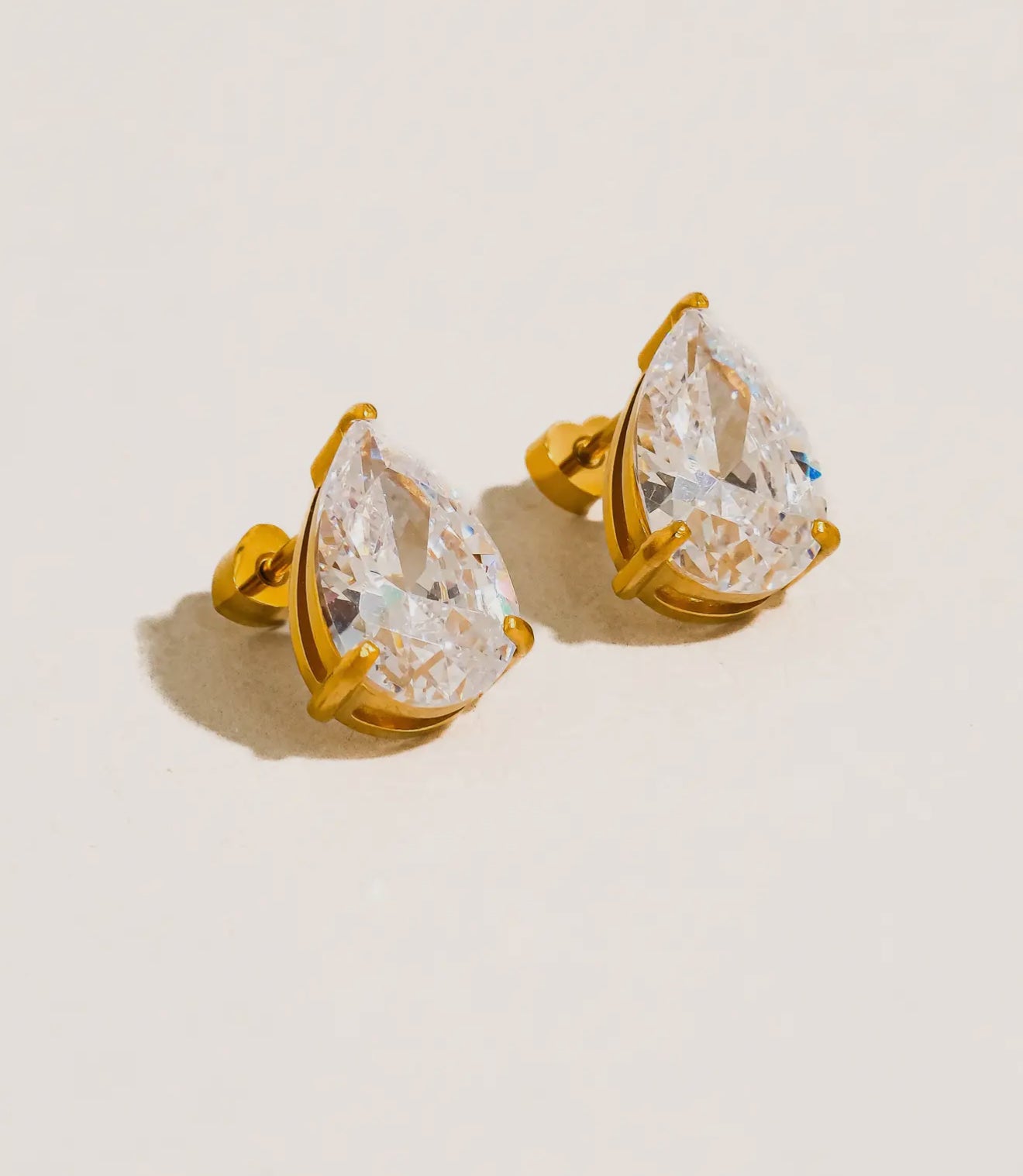 Avenn 18K Gold Non-Tarnish Round CZ Flat Back Earrings