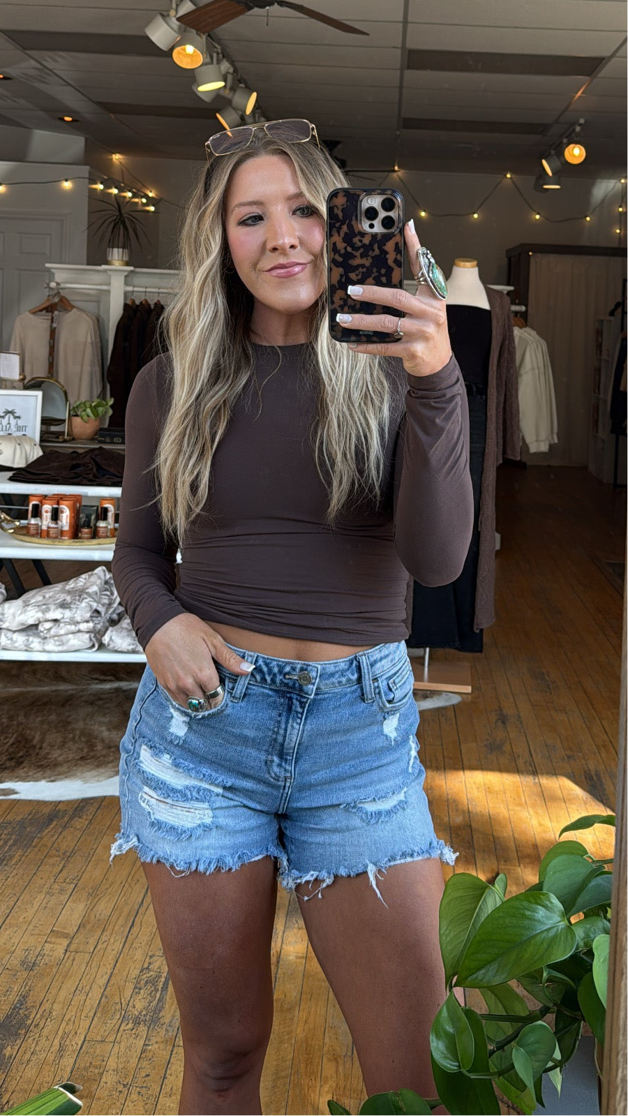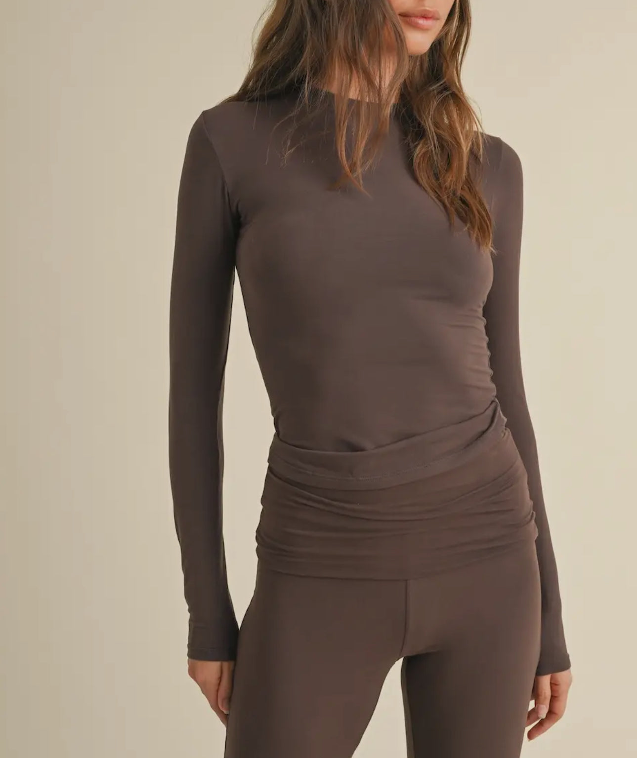 Say hello to your new favorite layering essential: the Ultra Soft Long Sleeve Tee in a rich cocoa brown. This elevated basic is crafted from an ultra-soft knit that feels like butter on the skin and hugs in all the right places with a fitted yet flattering silhouette.