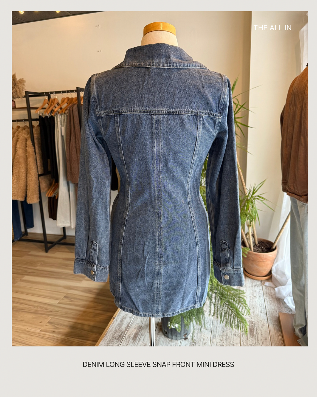 Elevate your casual wardrobe with the Denim Long Sleeve Snap Front Mini Dress — a perfect blend of western charm and modern style. Featuring a classic collar and a snap-front closure, this mini dress brings effortless edge and versatility to your everyday looks.
