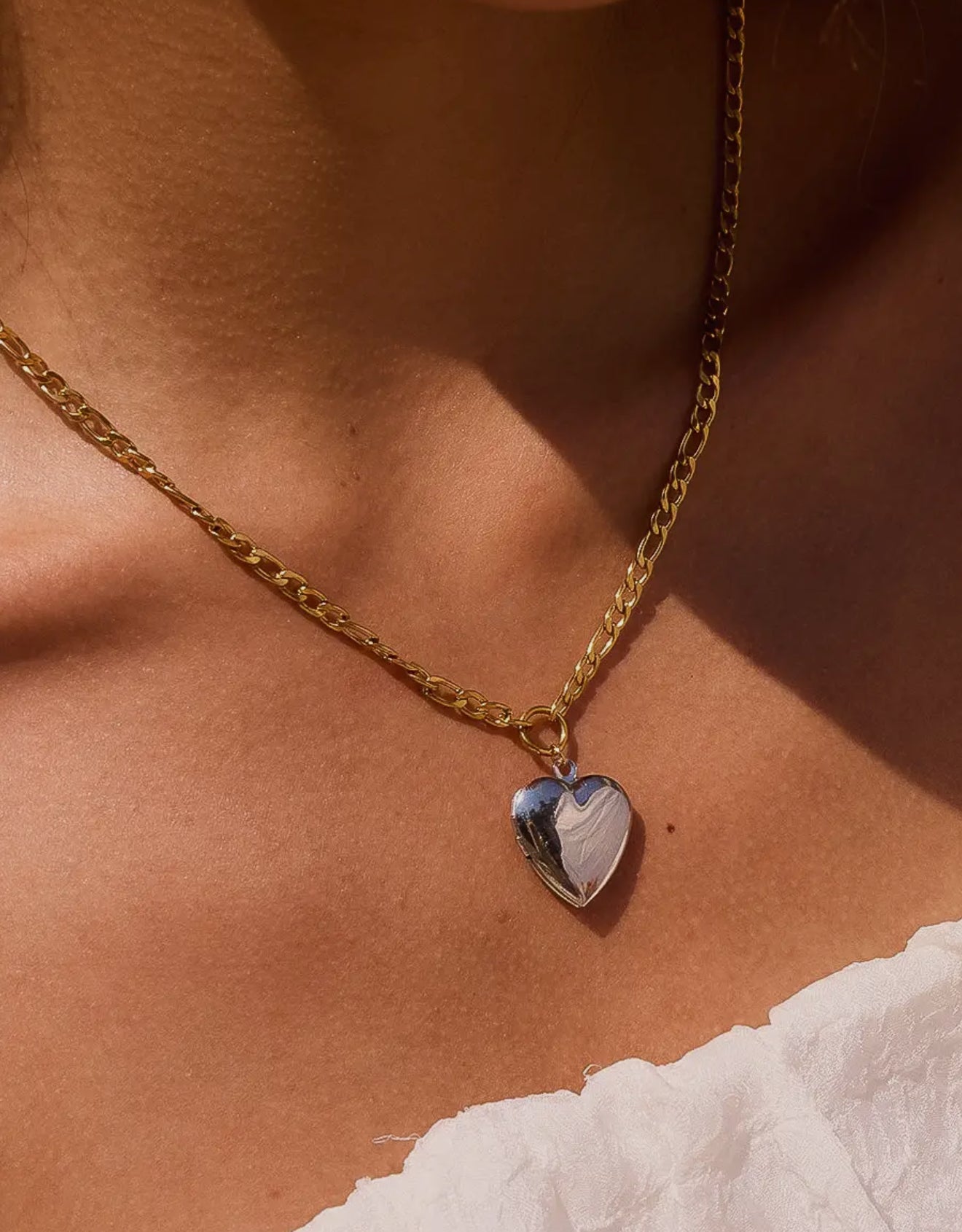 Heidi 18K Gold Non-Tarnish Two Tone Heart Locket Necklace