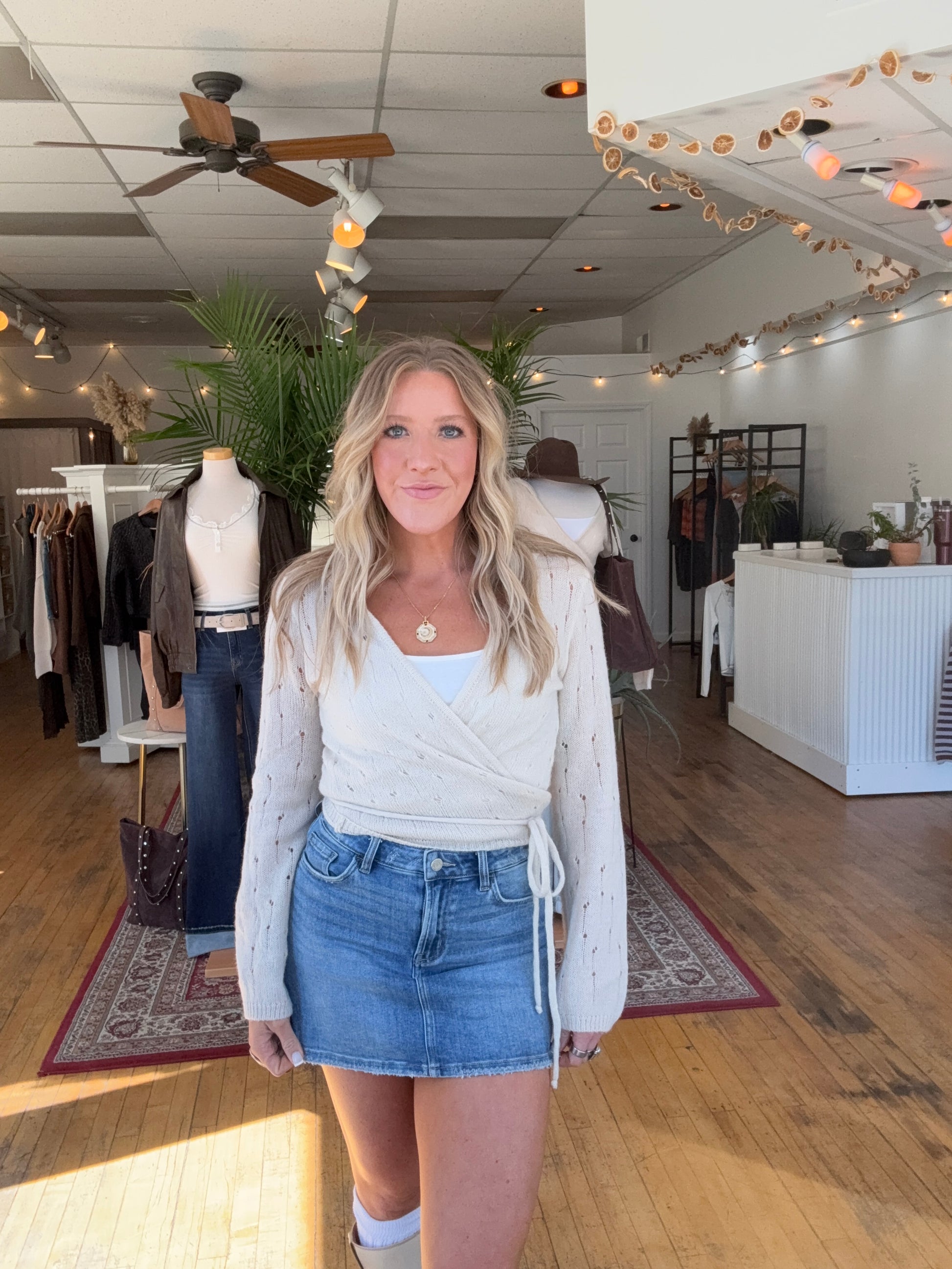 Comfy, lightweight wrap sweater. Perfect for layering for Fall or elevating a basic or active fit.