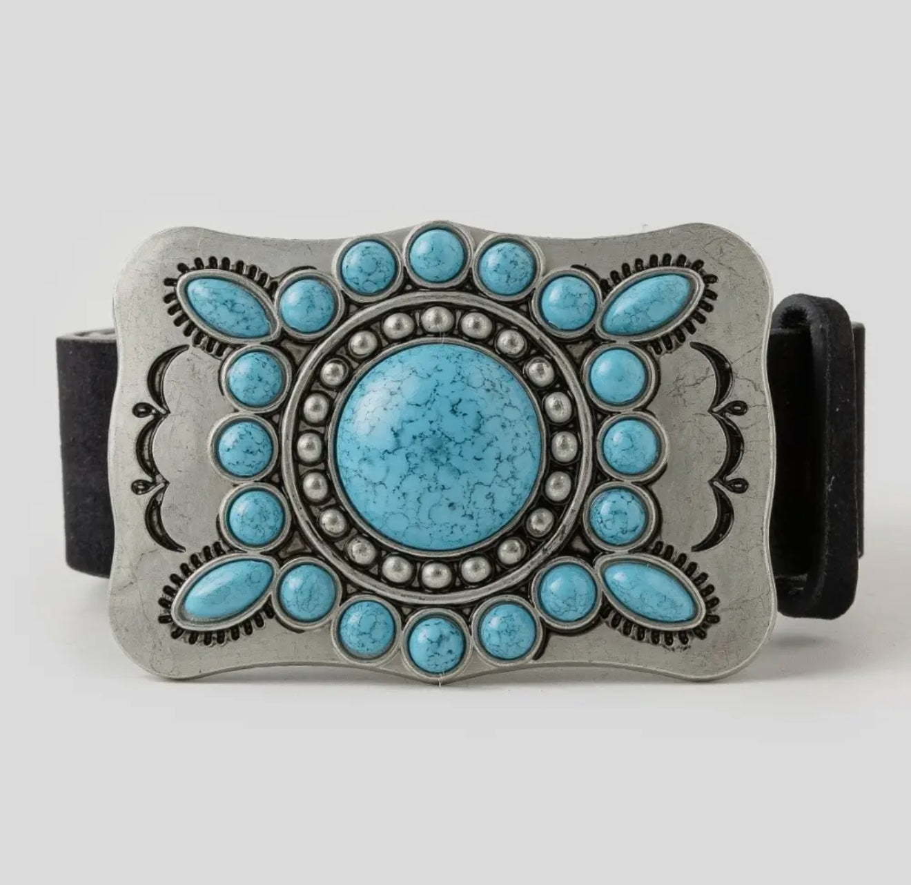 Large Western Turquoise Stone Concho Buckle Belt