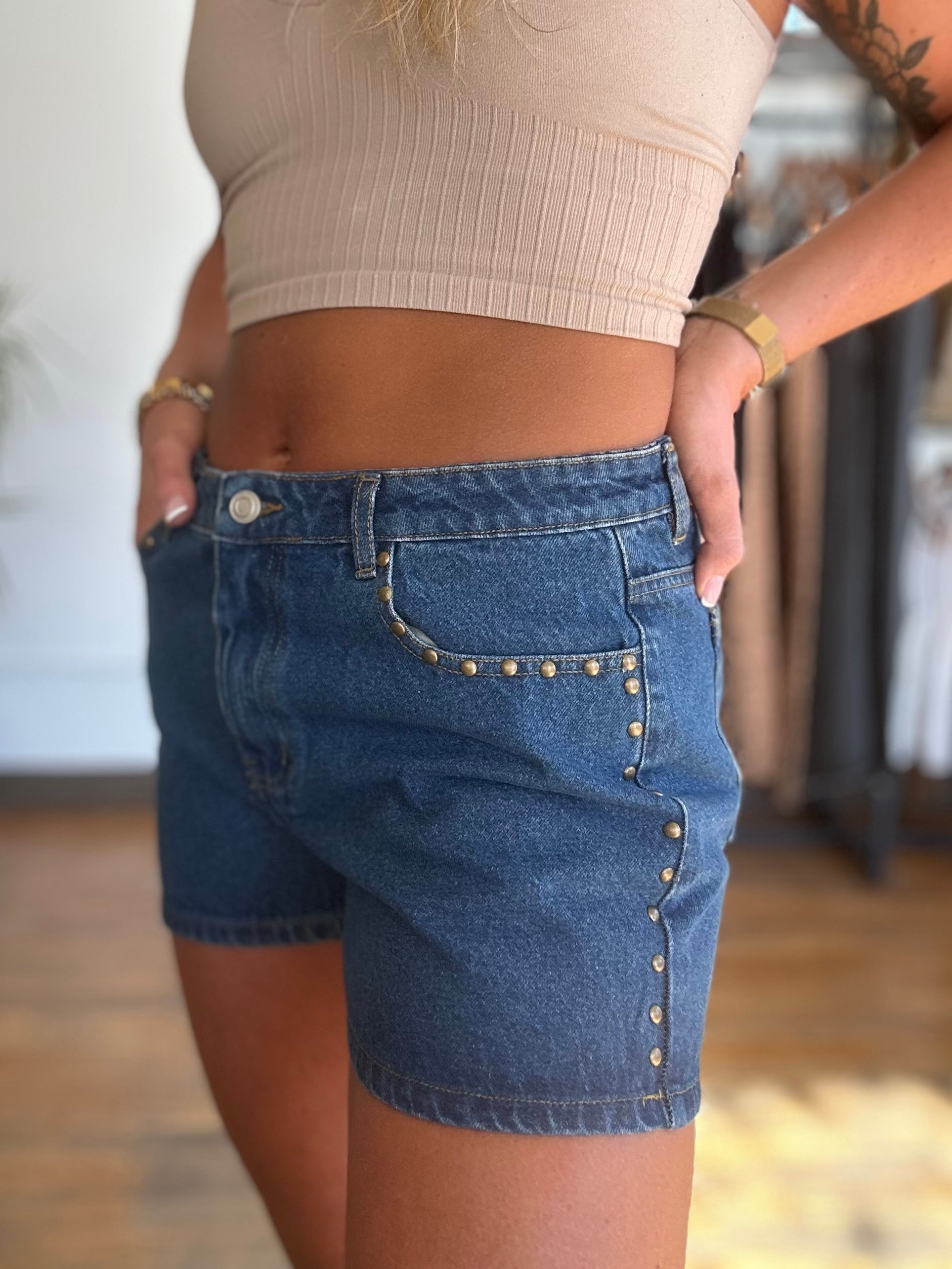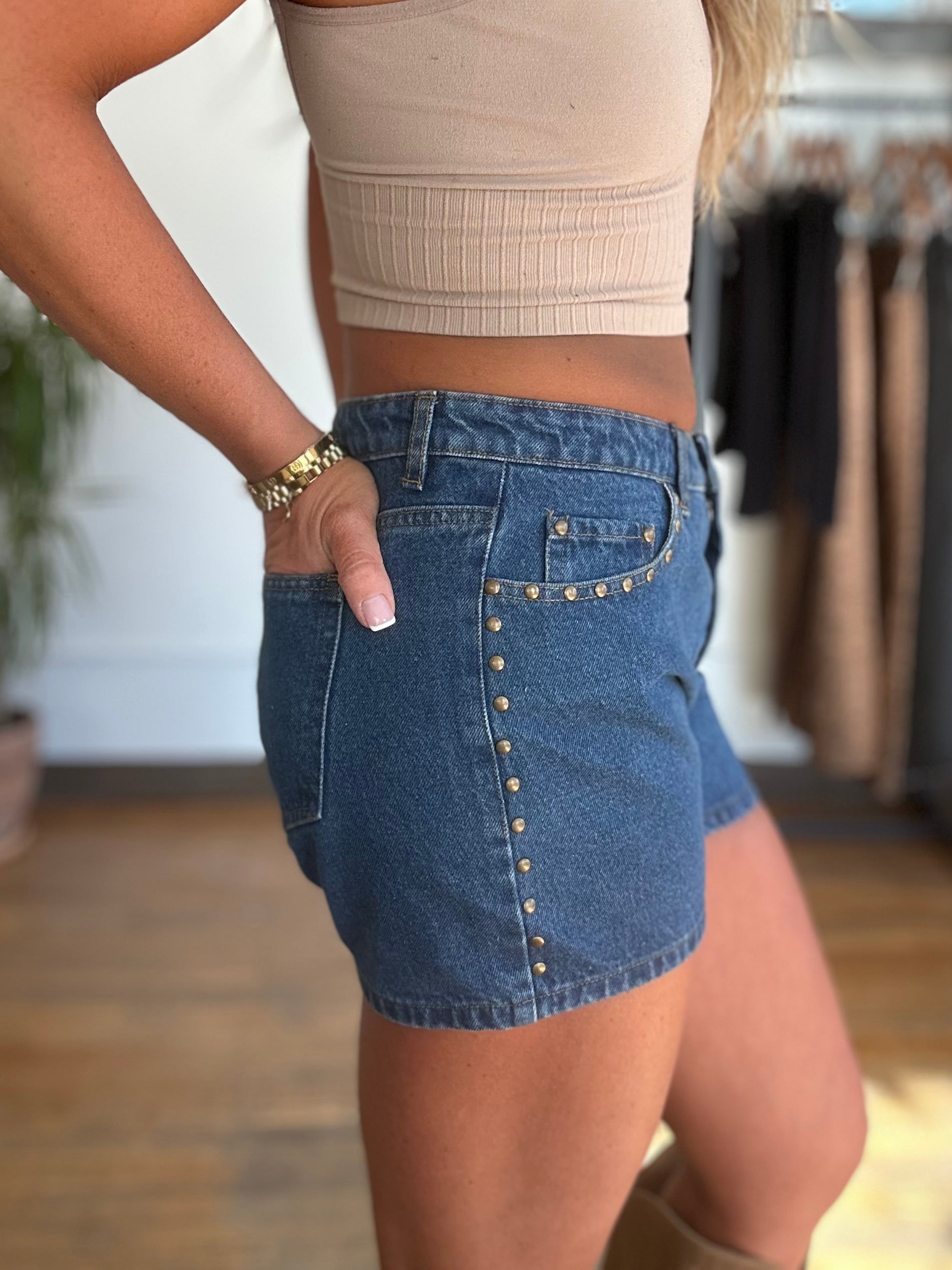 Roxie Studded Denim Shorts – Edgy Boho Mid-Rise Jean Shorts