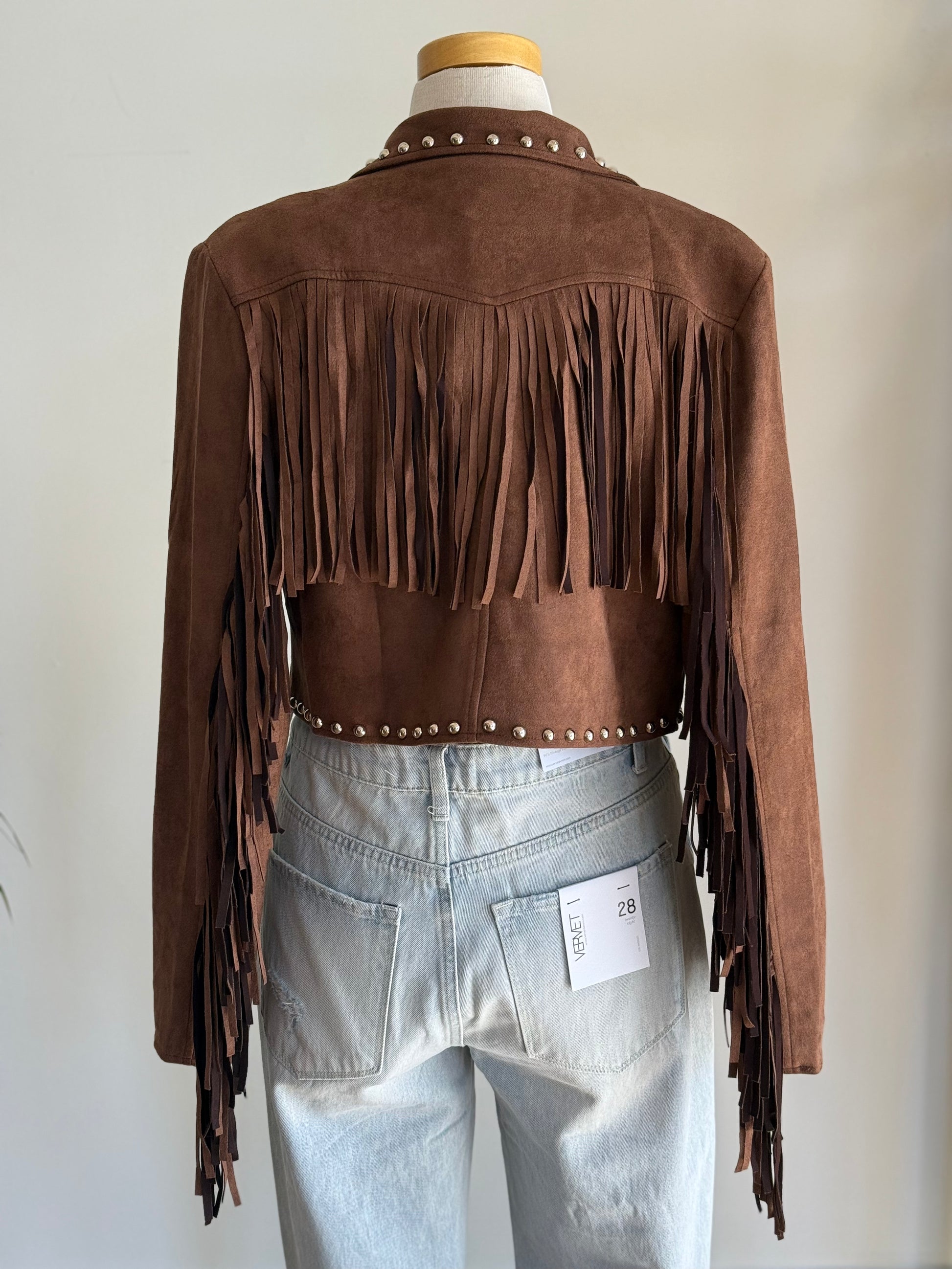 Studded Fringe Suede Jacket – Western-Inspired Statement Piece