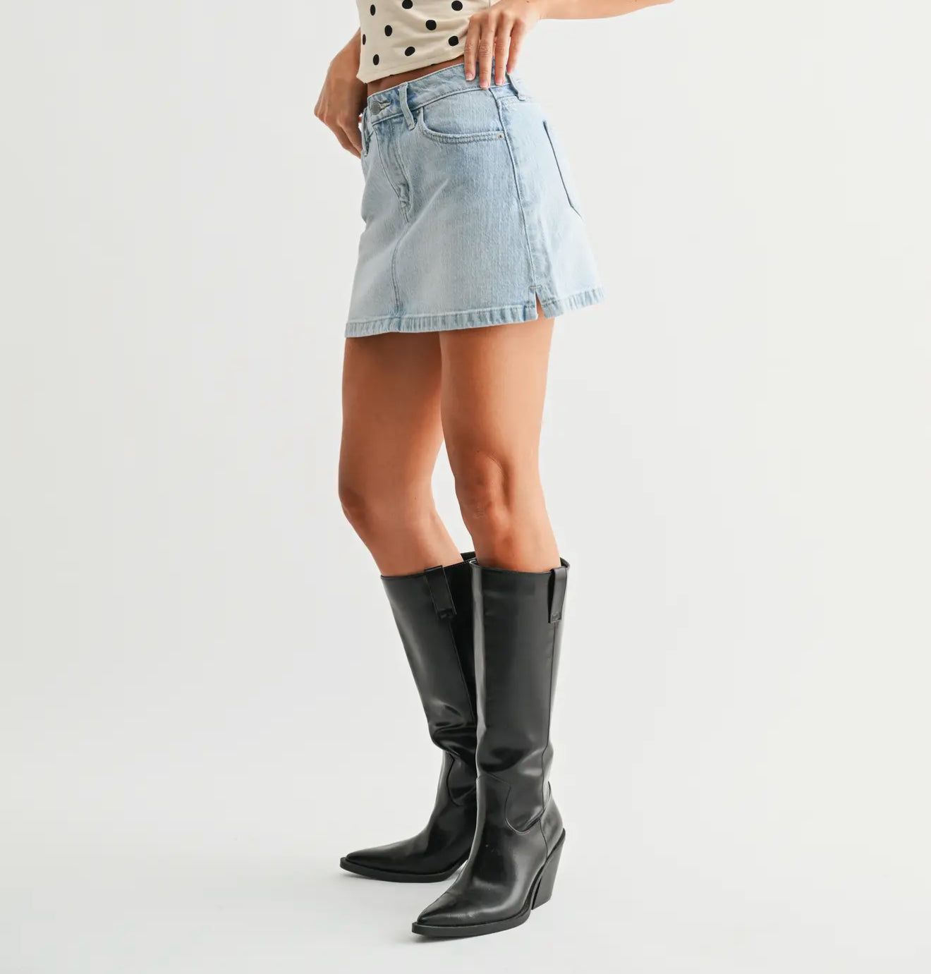 Light Wash Micro Skirt with Slit